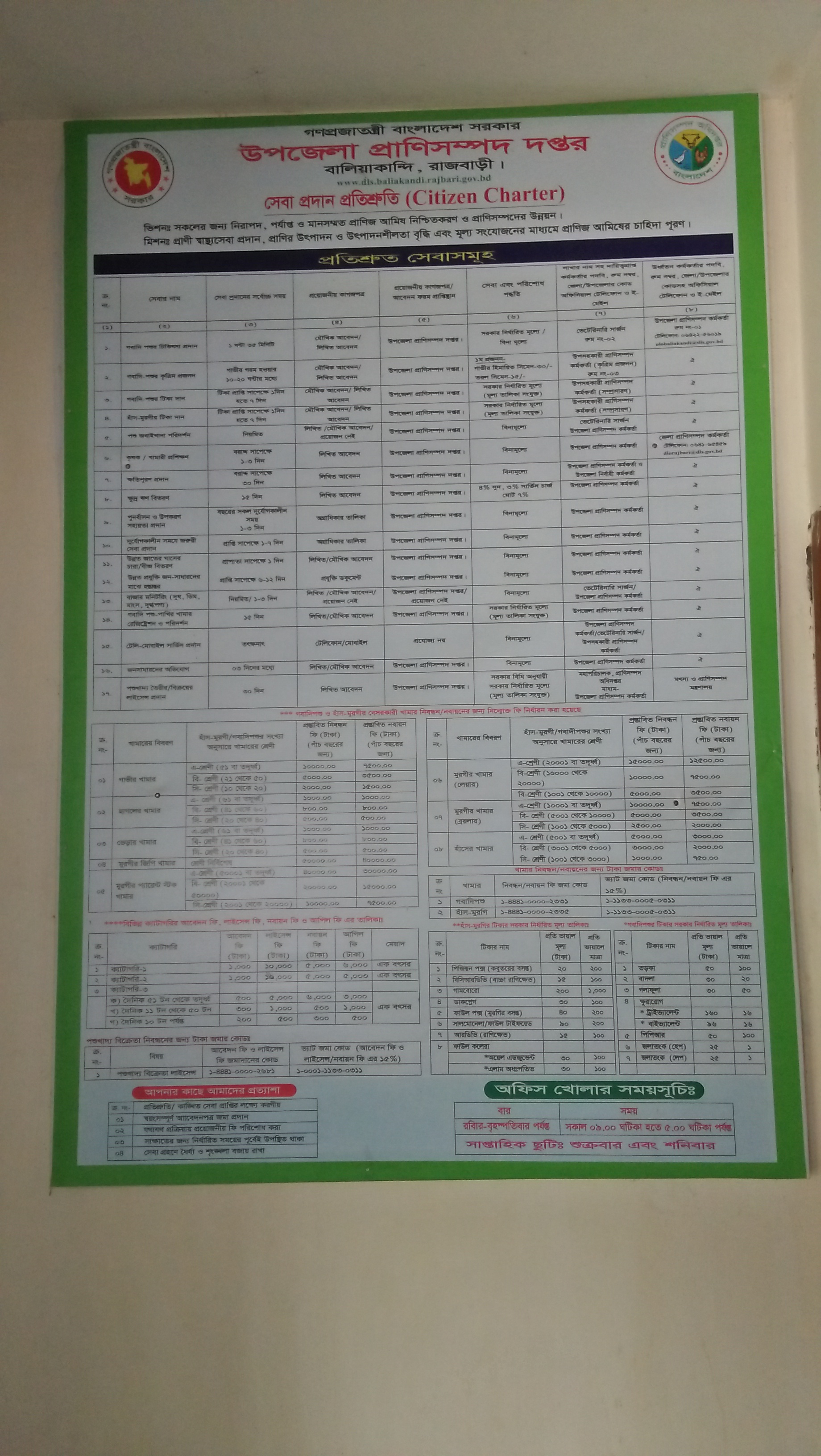 সিটিজেন চার্টার উপজেলা প্রাণিসম্পদ দপ্তর, বালিয়াকান্দি, রাজবাড়ী